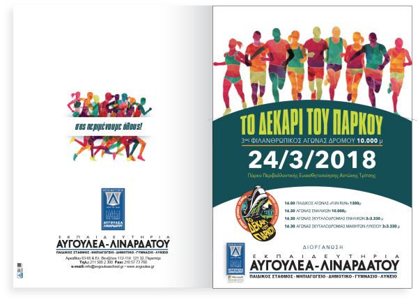 Τα Εκπαιδευτήρια Αυγουλέα – Λιναρδάτου το Σάββατο 24/3/2018, διοργανώνουν τον 3ο φιλανθρωπικό δρομικό αγώνα, « Το Δεκάρι του Πάρκου».