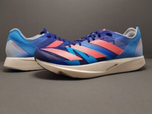 Κατηγορία: Racer – Πάτημα: Ουδέτερο – Βάρος: 185γρ. – Drop: 6mm (33/27mm) Στα Ιαπωνικά Takumi Sen σημαίνει “τεχνίτης της υψηλότερης βαθμίδας”. Το μοντέλο αρχικά σχεδιάστηκε για την εγχώρια αγορά, όπου και λανσαρίστηκε αποκλειστικά. Για όσους δεν το γνωρίζουν, οι Ιάπωνες έχουν μία μακρά παράδοση και κουλτούρα στον μαραθώνιο, ο οποίος είναι ένα από τα δημοφιλέστερα αθλήματα στην χώρα. Πιθανολογώ ότι έχει να κάνει με την πειθαρχία και την αφοσίωση που απαιτούνται στο συγκεκριμένο σπορ, αρετές που τους χαρακτηρίζουν εν γένει και ως λαό. Σύμφωνα με μία έρευνα του 2013, τρέχει το 20% του πληθυσμού της χώρας, ποσοστό ιδιαίτερα εντυπωσιακό. Οι Ιάπωνες δρομείς έδειχναν ανέκαθεν μία προτίμηση στα λεπτόσολα αγωνιστικά. Ίσως αυτό να σχετίζεται με τον σωματότυπο ή την μηχανική τους, γεγονός πάντως είναι πως υπήρχε μία “ανεξάρτητη” αγορά, με πολλές εταιρείες να σχεδιάζουν μοντέλα που διατίθεντο μόνο εκεί. Πανάλαφρα και με ιδιαίτερα χαμηλά ύψη, ίσα ίσα για να μεσολαβεί κάτι μεταξύ πέλματος και εδάφους. Βέβαια, η τάση αυτή δείχνει να αποτελεί παρελθόν, καθώς οι περισσότεροι Ιάπωνες έχουν περάσει πλέον στα σύγχρονα super shoes. Έτσι λοιπόν, η Adidas λάνσαρε στην Ιαπωνία πριν 10 χρόνια το Takumi Sen, συνοδεύοντάς το και με το πιο προπονητικό Takumi Ren. Από την 3η του έκδοση (αποκτώντας και Boost μπροστά), το παπούτσι ξεκίνησε να διατίθεται παγκοσμίως. Μπορεί για τους Ιάπωνες να αποτελούσε marathon shoe, οι υπόλοιποι όμως επέμεναν στο Adios, με το Takumi να παίρνει την θέση του ως ένα 5Κ/10Κ μοντέλο. Έτσι παρέμεινε μέχρι και την έβδομη γενιά του. Όλοι εξεπλάγησαν με τις πρώτες φωτογραφίες του επερχομένου Takumi Sen 8, αφού δεν θύμιζε σε τίποτα αυτό του παρελθόντος. Αρκεί να πούμε ότι μπροστά είναι ψηλότερο απ’ όσο τα παλιά πίσω. Καθώς όμως τα ύψη όλων των κατηγοριών έχουν ξεχειλώσει προς τα πάνω, το TS8 των 33/27mm η Adidas στα χαρτιά το κατατάσσει ως ένα 5Κ/10Κ μοντέλο. Επάνω μέρος και εφαρμογή Το επάνω μέρος ακολουθεί την συνταγή των Adios Pro 2 και Prime X, με κάποιες μικρές διαφοροποιήσεις. Το μισό παπούτσι, από τις διαγώνιες ραφές του midfoot και μπροστά, έχει ένα παραδοσιακό mesh, σαν αυτό του Adios 6. Πάρα πολύ λεπτό, διάτρητο, ανελαστικό και με κορυφαία διαπνοή. Το υπόλοιπο μισό, αποτελείται από το “πλαστικό” υλικό που συναντάμε στα ΑΡ2 και Prime X. Ίδιος με αυτά διατηρείται και ο προφυλακτήρας, από ένα άκαμπτο εξωτερικό φιλμ, ο οποίος δίνει καθορισμένο σχήμα στην περιοχή. Τα δομικά στοιχεία είναι κι εδώ πολλά, πλην όμως, εξωτερικά. Προσθέστε τις τρεις μεγάλες ρίγες, τις παχιές ραφές και το άκαμπτο πάνελ των κορδονιών κι έχετε ένα ιδιαίτερα δομημένο upper σε κάθε σημείο. Το πίσω μέρος είναι σχεδόν ίδιο με του Prime X. Υποτυπώδες κολάρο και δύο διαγώνιες ενισχύσεις, ενώ εσωτερικά παραμένει η σουέντ επένδυση, μαζί με δύο τμήματα (σχεδόν) αφρώδους. Για γλώσσα χρησιμοποείται μία διάτρητη φλοίδα σουέντ υφάσματος, η οποία είναι ραμμένη σε δύο σημεία με τα πλαϊνά. Ευτυχώς, γιατί αλλιώς δεν θα έστρωνε ποτέ. Τα κορδόνια είναι τα κλασικά Adizero, δηλαδή βαμαβακερά και λεπτά. Η Adidas επιλέγει και εδώ ένα πολύ stuctured επάνω μέρος. Ένα πλήθος από overlays, με κάποια από αυτά να αλληλοκαλύπτονται κιόλας, δεν επιτρέπουν καμμία ελαστικότητα στην όλη κατασκευή. Η εφαρμογή καθορίζεται κυρίως από το μεσαίο τμήμα. Αρχικά δίνει την εντύπωση πως είναι αρκετά στενό, καθώς το πόδι δυσκολεύεται να χωρέσει, λόγω της ραμμένης γλώσσας και του σκληρού πάνελ των κορδονιών. Οι πολλές και στε