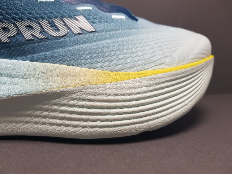 The Kipride Max is a very soft shoe with massive protection. It compresses deeply, delivering the security you expect from this category. However, the ride never becomes uncontrolled or wasteful. You sink into the foam, enjoy all the softness, yet still feel that there’s plenty of material beneath your feet. This sensation is consistent throughout the entire length of the midsole, regardless of footstrike.