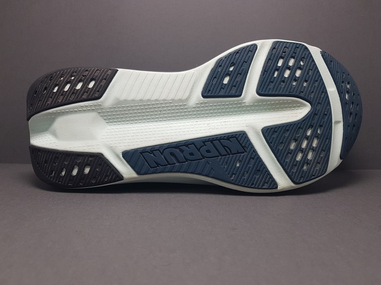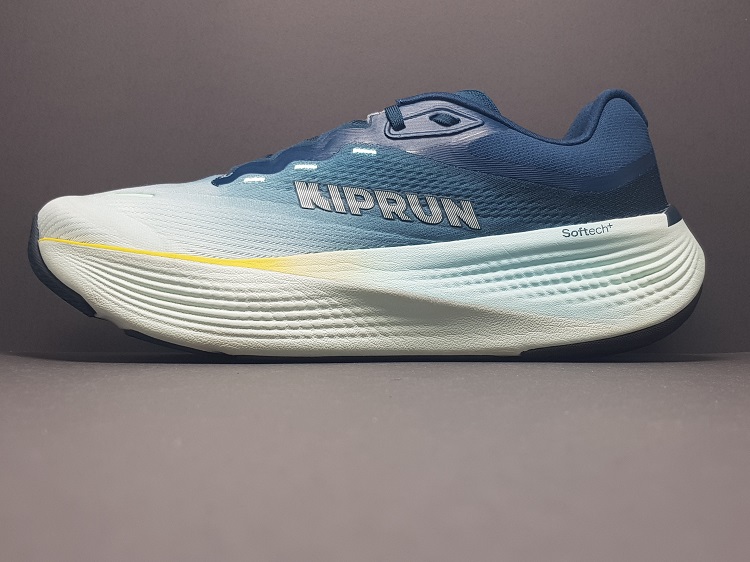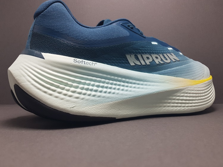 The Kipride Max introduces a new foam compound for the brand: Softech+. It consists of PEBA, EVA, and OBC (Olefin), aiming to balance elasticity and durability. The exact proportions of each material are not disclosed.