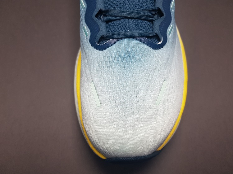 The toe box is roomy, allowing freedom of movement thanks to the pliable fabric, with ample vertical space over the forefoot. It may initially feel a bit generous for runners with narrower feet (like myself), but on the run it never feels unstable.