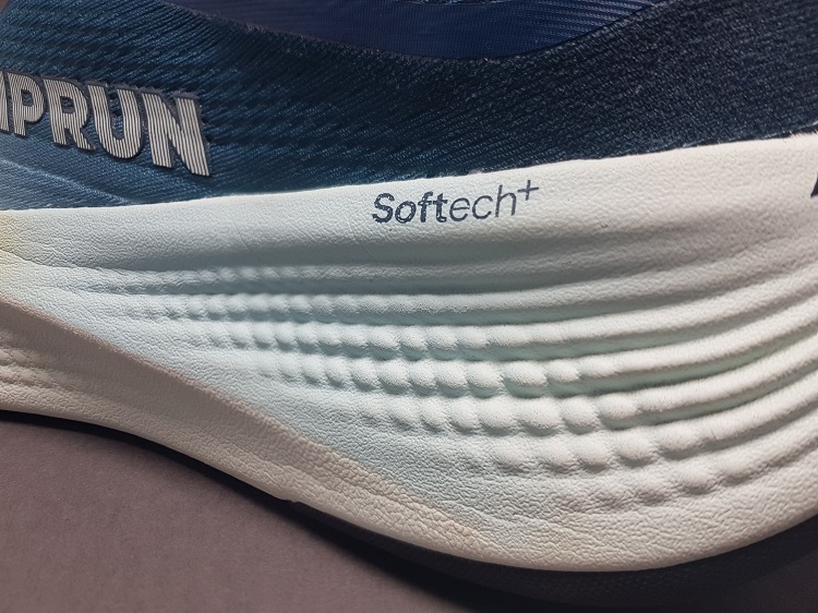 What really stood out to me is that Softech+ also has a fair amount of energy. It’s not just soft, it has elasticity that makes things even easier. Compression and rebound are quick and the bounce is present even at slow, unloaded paces. The shoe lifts effortlessly, no matter how lazily you land. If you decide to push a bit, it doesn’t complain. I’m not suggesting to use it at speed workouts, but strides at the end or a change at moderate pace that may occur, are handled without issue. An extra bonus, let’s say. The platform doesn’t splay out under additional force, nor is the base excessively wide to slow transitions.