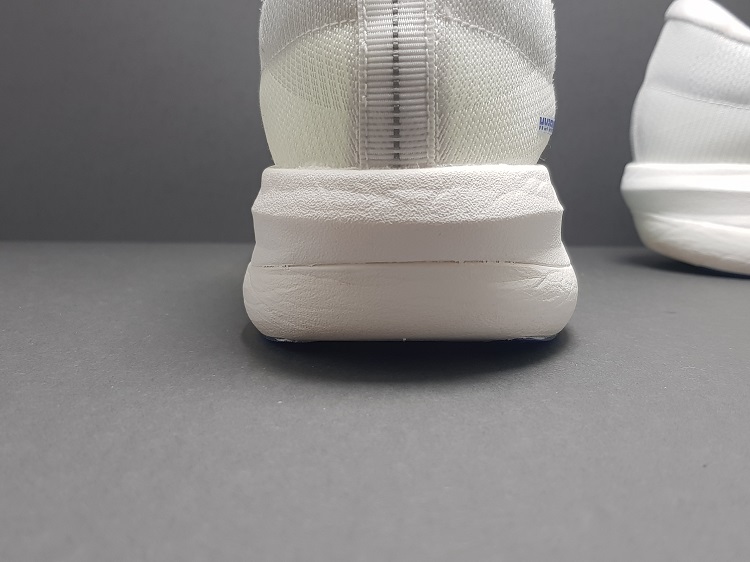 Συγκριτικά με την υπερπαραγωγή του Rebellion Pro, εδώ η σόλα μοιάζει έως και… ταπεινή. Εκεί που του πρώτου ξεπερνούσε σχεδόν κατά 50% το ανώτατο όριο (40mm) της World Athletics, με το τρικ της λοξής φτέρνας, το Elite δεν το εξαντλεί καν. Αυτό από μόνο του δείχνει την διαφορά φιλοσοφίας στην σχεδίαση των Hyperwarp.