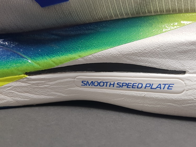 Ανάμεσά τους είναι τοποθετημένη η Smooth Speed Plate, μία φαρδιά πλάκα από ανθρακονήματα με σχετικά επίπεδο σχήμα αλλά απότομη γωνία στο τελείωμα. Δίνει έμφαση στον έλεγχο της συμπίεσης και την σταθερότητα, κάτι που ενισχύεται και από το κάθετο “φτερό” που σχηματίζει στην καμάρα.