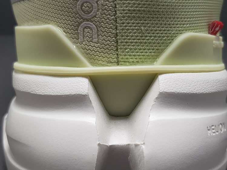 Φυσικά εκεί έρχεται και το σκληρό κλιπ, το οποίο κάθεται σαν πανοπλία γύρω από το οστό της φτέρνας. Δεν είναι μάλιστα μόνο όσο φαίνεται, αφού προεκτείνεται και μέσα στην σόλα. Το ίδιο ισχύει και με το midfoot και τα ψηλά τοιχώματα της σόλας.