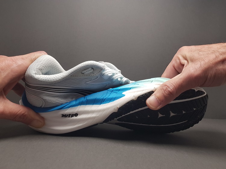 Προχωρώντας προς τα εμπρός, νοιώθεις την ποσότητα του αφρού να μειώνεται αλλά σε καμμία περίπτωση δεν καταλήγει ανεπαρκής. Το forefoot έχει γρήγορο rebound και σηκώνεσαι πριν αισθανθείς το έδαφος. Αρχικά περίμενα ότι τα 26mm θα είναι λίγα, τελικά όμως ο Nitro τα διαχειρίζεται πολύ καλά και σε προστατεύει.