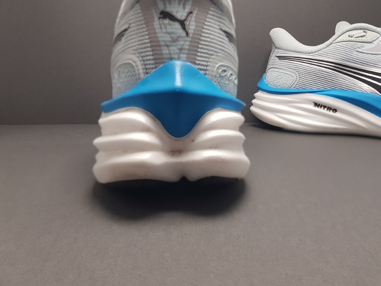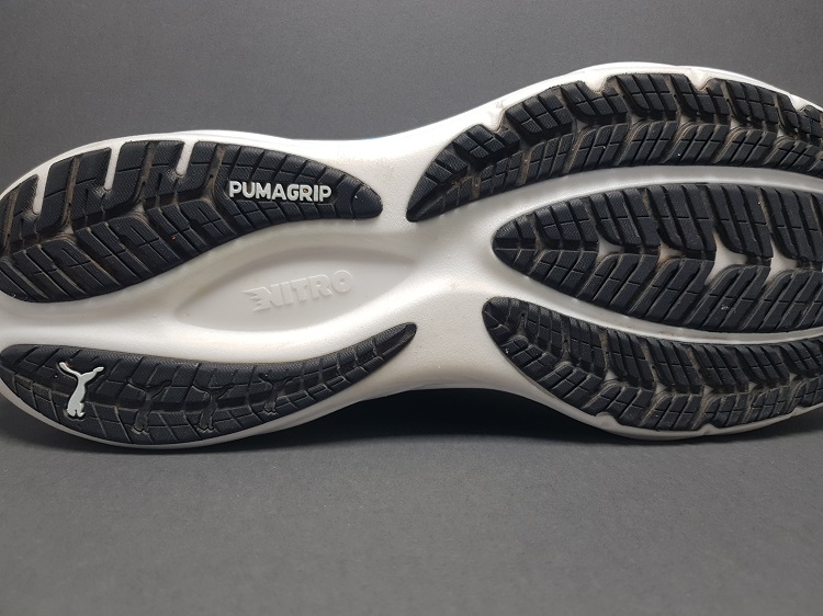 Στο νέο μοντέλο τα πράγματα αλλάζουν εντελώς. Κατ’ αρχάς η σόλα είναι εξ ολοκλήρου από Nitro, χωρίς πλέον τον EVA που “έπνιγε” τον καλό αφρό. Το σημαντικότερο όμως είναι άλλο. Παρότι η Puma δεν μας δίνει λεπτομέρειες, εικάζεται ότι στο v4 ο Nitro είναι από Aliphatic TPU. Το ίδιο δηλαδή υλικό που αποτελεί και τον Nitro Elite των αγωνιστικών μοντέλων της εταιρείας. Απλά εδώ έχει ένα διαφορετικό, πιο “προπονητικό” tuning.